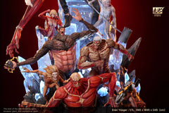 Around the throne, the War Hammer Titan, Beast Titan, Armored Titan, Female Titan and more all emerge in intricate detail. The icy shards, glowing energy effects, and layered base create a true diorama masterpiece that looks like a living monument to the world-shaking events of Attack on Titan.