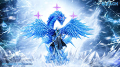 Diese Resin-Statue von SY Studio zeigt Hitsugaya Tōshirō aus Bleach (Anime/Manga) in einer seiner stärksten und beeindruckendsten Formen – mit gigantischen Eisschwingen, scharfen Kristallen und dem imposanten Eisdrachen im Hintergrund. Das transparente blaue Resin lässt Hyōrinmarus Kälte lebendig wirken, als würde der gesamte Bankai-Moment im Raum gefrieren.