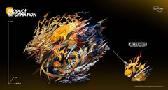 Hamlet Studio brings the heat — literally — with this 1:5 Flaming Thunder God Zenitsu Agatsuma resin spectacle, complete with LED illumination. Captured mid-strike, Zenitsu erupts into his divine lightning form, backed by a colossal roaring flame dragon that makes the whole scene feel like a panel ripped straight out of Demon Slayer (anime/manga).