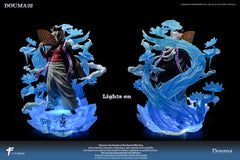 Translucent icy effects swirl around the figure like frozen lotus blooms, sculpted in dynamic motion that feels almost alive. The LED lighting enhances the frosty aura, making the sculpture glow like Douma just summoned his Blood Demon Art. With crisp costume details, flowing robes, and his signature calm expression, this piece balances beauty and menace in true Upper Moon fashion.