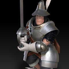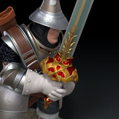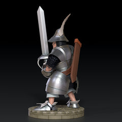 Solar Studio delivers a beautifully stylized take on Adelbert Steiner, blending chibi-inspired proportions with serious craftsmanship. From the brushed metal look of the armor and chainmail texture to the expressive face and iconic helmet plume, every detail screams honor, duty, and classic JRPG nostalgia. The stone-styled base grounds the statue perfectly, making it an ideal centerpiece for any premium display.
