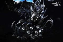 This 27Abyss Studio resin statue captures The Knight from the Hollow Knight (videogame) universe in a truly haunting, stylish way. The sculpt shows the tiny wanderer rising from a swirl of inky shades, surrounded by twisting Void tendrils and multi-eyed shadowlings. The glossy blacks, pearly gradients, and luminous white eyes give the whole piece that mysterious Hollow-Nest ambience — like a moment right before a powerful Soul ability bursts.