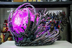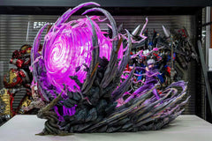 The centerpiece is the spectacular swirling energy sphere, sculpted with translucent purple resin elements that create an intense sense of motion and depth. Combined with the shattered rock base and flowing energy arcs, the statue delivers true domain-expansion-level presence. Fantasy Studio’s sharp sculpting, layered textures, and dramatic paint application elevate this piece into high-end resin territory.