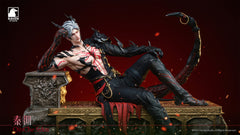 Raven Studio’s 1:6 Sylus brings the Love and Deepspace heart-stealer straight into your room — and this time, he’s not just flirting through a screen. Draped across an ornate throne-like base, Sylus shows off his demonic markings, sculpted physique, and that iconic scorpion tail curling with dangerous charm. The mix of glossy blacks, blood-red accents, and razor-sharp armor elements makes this statue feel like he stepped right out of an Overclock battle and into real life.