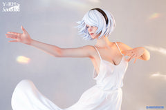 From NieR:Automata, YorHa Studio presents a rare and intimate vision of 2B. Far from combat and cold steel, she is captured in a flowing white dress, frozen mid-movement like a fleeting memory between endless cycles.