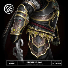 Step into the dark majesty of The Legend of Zelda with this imposing Ganondorf statue by Dream Studio. Inspired by his Twilight Princess incarnation, the King of Evil stands in full battle regalia—ornate armor layered with intricate gold details, a flowing crimson cape, and that unmistakable aura of dominance. His piercing gaze and battle-ready stance say one thing: Hyrule is his to take.